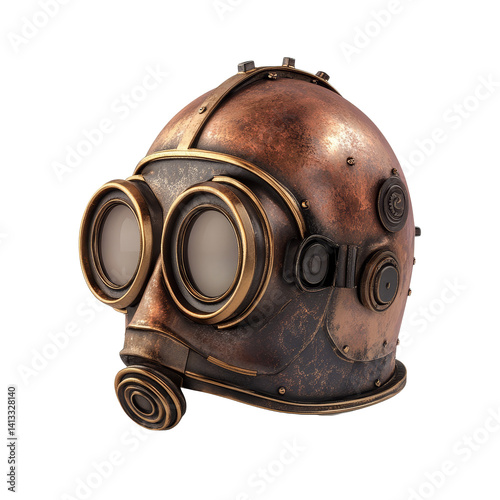 Vintage cartoon diving helmet on a transparent background showcasing classic design and charm, 3D Cartoon Vintage Diving Helmet On transparent background