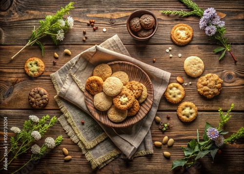 Vintage Closeup of Delicious Cookies on Rustic Table for Baking and Dessert Enthusiasts