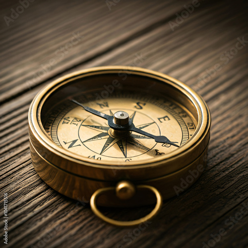 Vintage compass on a wooden surface pointing northeast