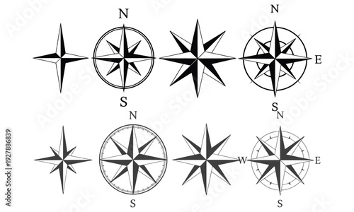Vintage compass rose navigation symbol vector illustration set