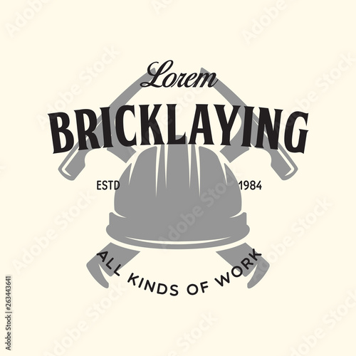 Vintage construction and bricklaying label. Poster, stamp, banner and design elements. Vector illustration
