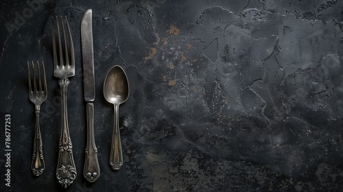 Vintage cutlery set on dark, rustic background