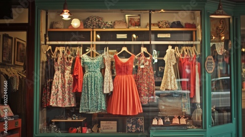 Vintage Dresses Displayed in a Storefront Window