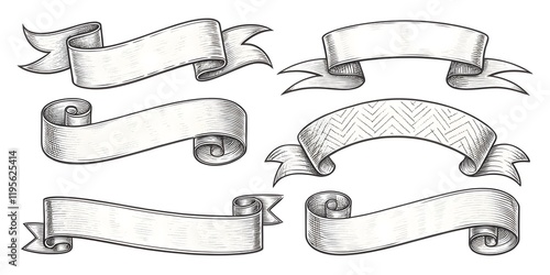 Vintage Engraved Banners, Ribbons, and Laurel Wreath Designs V4