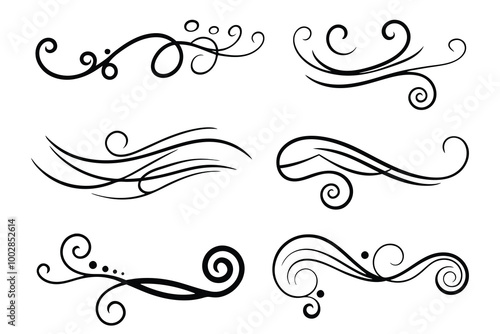 Vintage Filigree Swirls, calligraphy font style Decorative Elements, Text Ornaments curly thin line swings swashes, Flourishes Swirls, text divider, flourish Swirl ornament stroke, scroll design