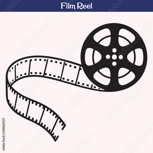 Vintage Film Reel with Unwound Strip Illustration