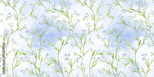 Vintage floral background. Seamless pattern for design and fashion prints. Flowers pattern with small white and blue flowers. Ditsy style.