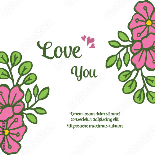 Vintage greeting card love you, romantic, with style of pink flower frame blooms. Vector
