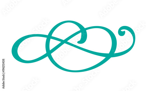 Vintage hand drawn flourish separator Calligraphy elements symbol linked, join, passion and wedding. Template for t shirt, card, poster. Design flat element of valentine day. Vector illustration