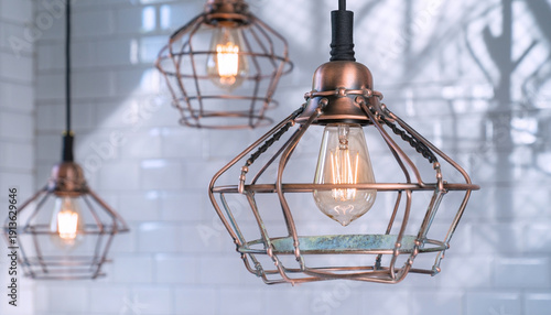 Vintage industrial wire cage pendant lights with Edison bulbs modern interior lighting