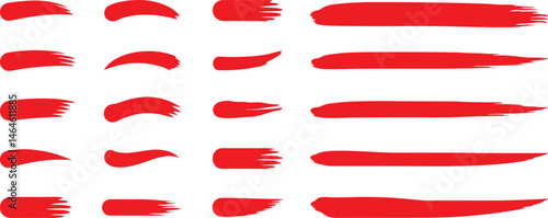 Vintage line vector brush strokes set. Red hand drawn stripes calligraphy brushstrokes set. Rough grunge thick paint line textures. Grungy sketchy rectangle text boxes collection