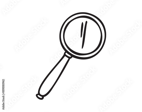 Vintage magnifying glass classic detective look line art monochrome hand drawn