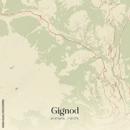 Vintage map of Gignod, Italy.