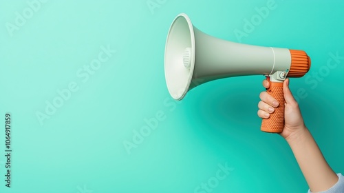 Vintage Megaphone in Hand on Turquoise Background - Retro Aesthetic