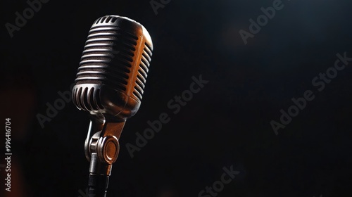 Vintage microphone against a black backdrop