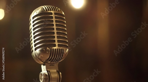 Vintage microphone in a dark room