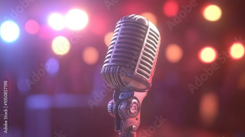 Vintage Microphone with Colorful Background Lights