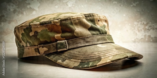 Vintage Military Cap, Camouflage Hat, Retro Army Headwear, Aged Photo Effect, High-Resolution Image