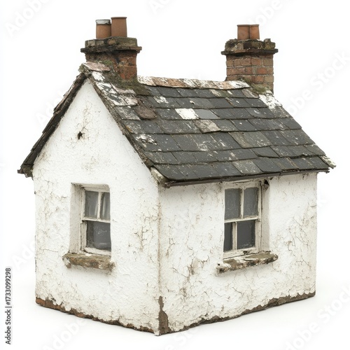 Vintage Miniature House Model with Rustic Charm and Detail