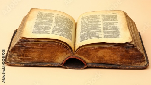 Vintage Open Book on Table with Yellow Background and Pages Showing