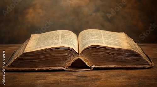 Vintage Open Book on Wooden Table with Soft Background