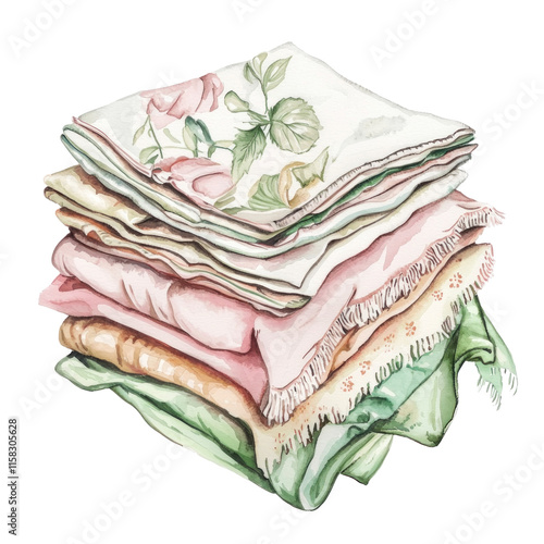 Vintage Pastel Napkins Stacked in Soft Colors, Featuring Floral Patterns and Retro Design Elements