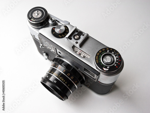 Vintage photo camera on white background