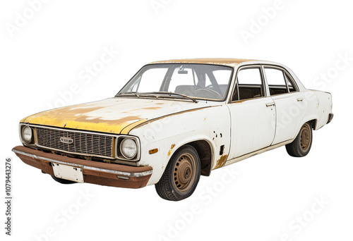 Vintage Rusty White Sedan with a Transparent Background