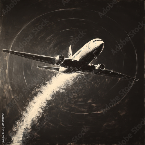 Vintage Sepia Airplane in Flight, Grunge Texture Background