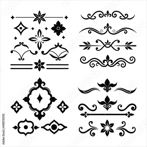 Vintage Silhouette Decorative Border Ornaments Collection.