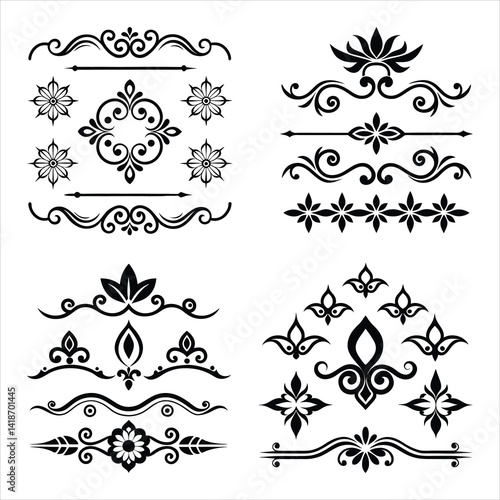 Vintage Silhouette Decorative Border Ornaments Collection.