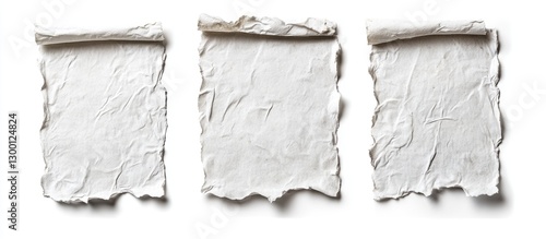 Vintage textured paper collection featuring three irregularly shaped, crinkled sheets in muted off-white tones set against a white background.