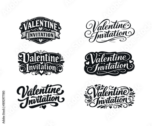 Vintage Valentine Typography. Vintage Valentine invitation typography. Set lettering. harmonious lettering variations of the same emblematic concept, each with