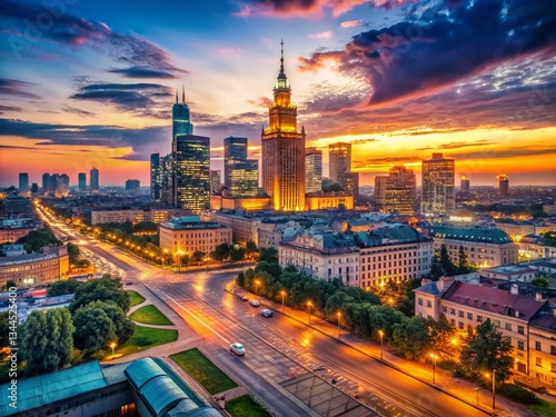 Vintage Warsaw Cityscape Timelapse: Summer Evening to Night
