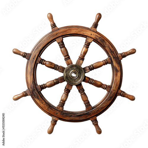 Vintage wooden ship wheel, nautical decor.