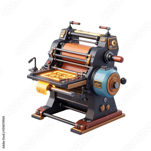 Vintage-Style Printing Press Featuring Copper Roller and Glowing Design