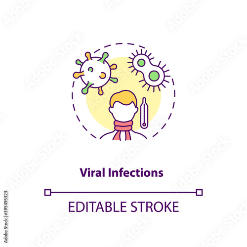 Viral infections concept icon. CFS cause idea thin line illustration. Post-viral fatigue. Immune system problems. Low-grade fever. Vector isolated outline RGB color drawing. Editable stroke