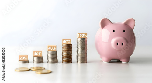 Visualize your investment goals with this stack of coins and a piggy bank, representing growth and financial success for your business ventures now.