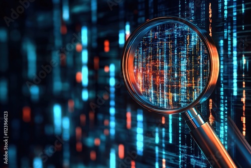 Visualizing data patterns through a magnifying glass in a digital environment with vibrant colors