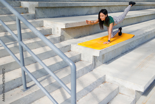 Vitality in Motion: Brunette Executing Stadium Leg Moves