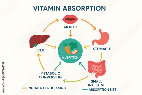 Vitamin Absorption Process in Human Body, Illustration