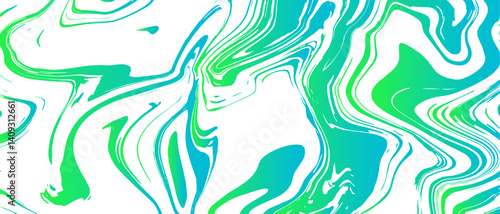 Vivid abstract marble texture with swirling neon green, aqua blue, and cyan on a bright white background. Fluid, organic smooth, paint-like lines with mimic ink and acrylic flow.