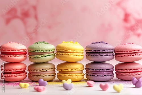Vivid Macarons Pile: A Colorful Display of Pastry Delights