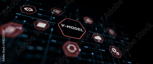 V-Model system and software development lifecycle methodology. Technology concept