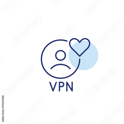 VPN user and heart. Secure and trusted services, protected connection. Pixel perfect, editable stroke vector icon