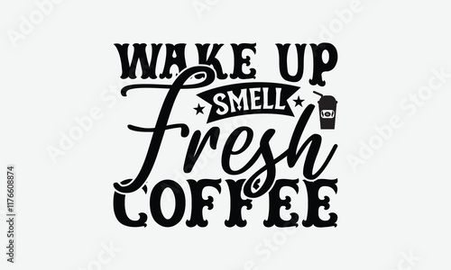 Wake Up Smell Fresh Coffee - Coffee T-Shirt Design, Illustration Written Vector T Shirt Design, Bags, Posters, Cards, Isolated On White Background.