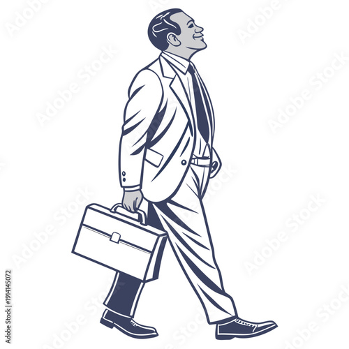 Walking businessman with briefcase in hand suit