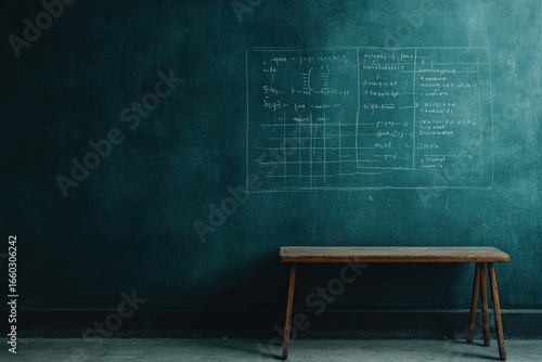 Wall features various formulas and a table diagram