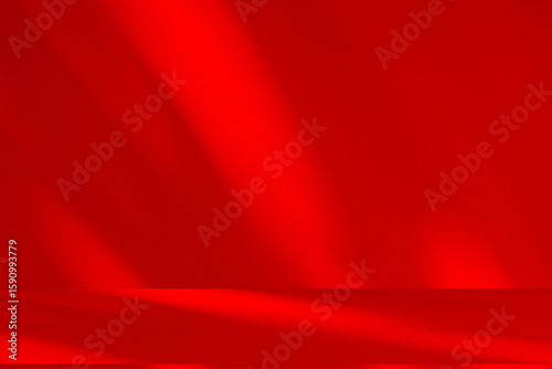 Wall interior background, studio and backdrops show products.with shadow from window color Red background for text insertion and presentation product