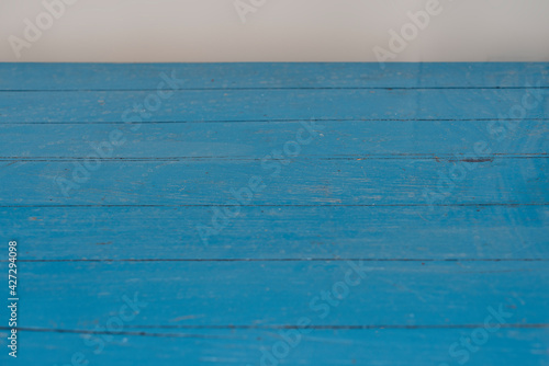 Wall of wooden table in front of background